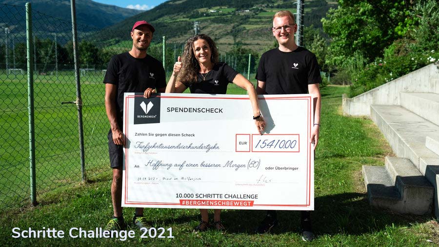 Bergmensch steht nicht nur auf festem Grund in den Alpen, sondern auch fest im sozialen Engagement. Unsere "10.000 Schritte Challenge" ist das lebendige Beispiel dafür. Im Mai 2021 sind wir, gemeinsam mit euch, jeden Tag aufs Neue losgezogen, um nicht nur unsere Gesundheit zu fördern, sondern auch konkret etwas für die Gemeinschaft zu tun.